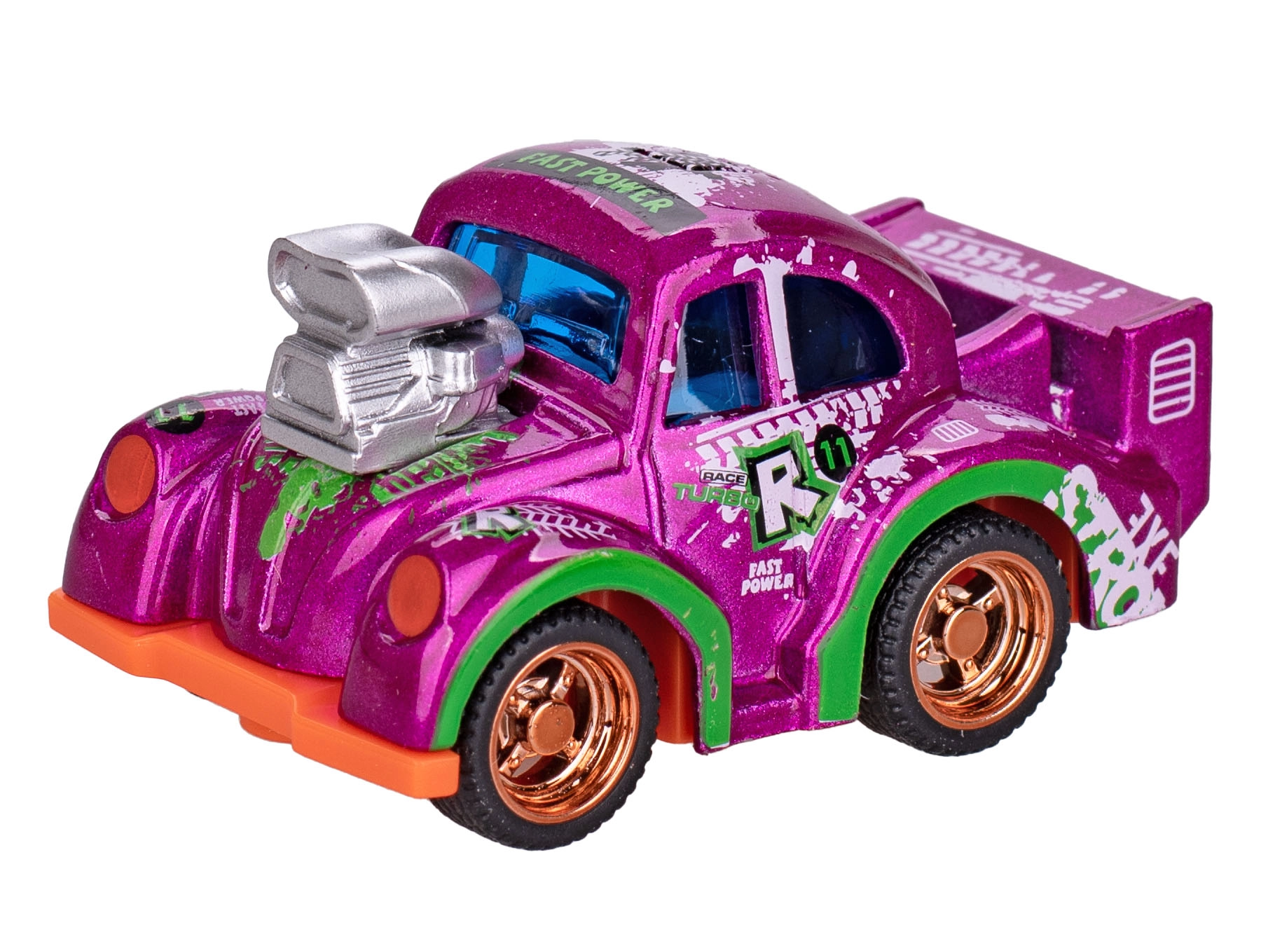Ein kompaktes sportliches Spielzeugauto mit 5 cm Länge bietet Kindern viel Action und Spaß. Dank des Rückziehantriebs einfach nach hinten ziehen und loslassen – das Auto fährt von selbst nach vorn. Die Metallkarosserie mit Kunststoffdetails sorgt für Robustheit und Langlebigkeit, während das realistische Design und die leuchtenden Farben die Fantasie anregen. Es gibt 8 verschiedene Varianten, ideal für kleine Sammler. Geeignet für Kinder ab 3 Jahren.