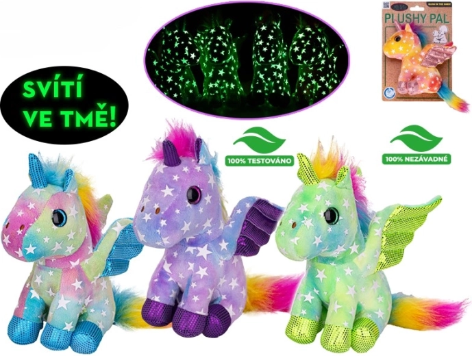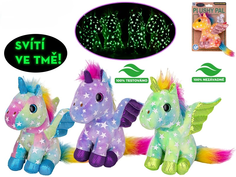 Begrüßen Sie ein zauberhaftes Wesen im Kinderzimmer, das Abende und die kindliche Fantasie erhellt. Dieses weiche Einhorn in 15 cm Größe hat glitzernde Flügel und kann sanft im Dunkeln leuchten, wodurch es Kindern hilft, die Angst vor der Dunkelheit zu überwinden und ruhiger einzuschlafen. Es besteht aus weichem, angenehm kuscheligem Plüsch und ist für Kinder ab 0+ geeignet.
