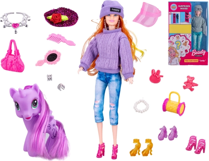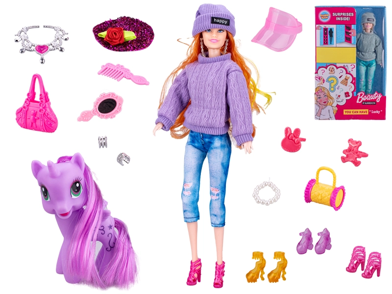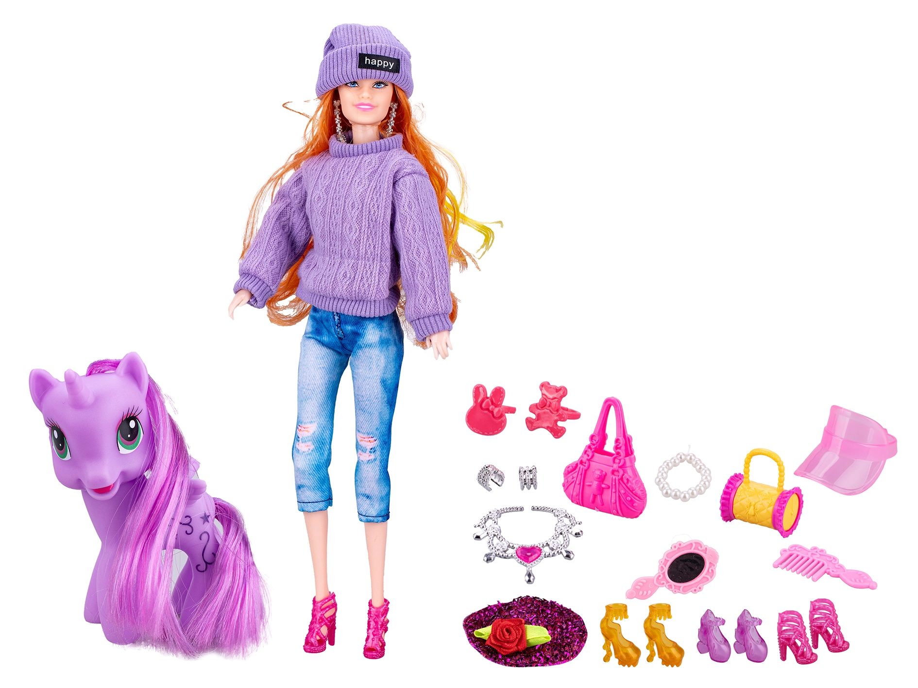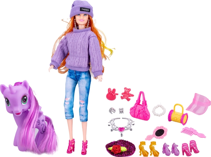 Die Puppe ist in den Varianten Lila und Grün erhältlich, sodass Sie ganz einfach nach Lieblingsfarbe wählen können. Die elegante Verpackung in einer Schachtel macht sie zu einem tollen Geschenk für kleine Modefans.