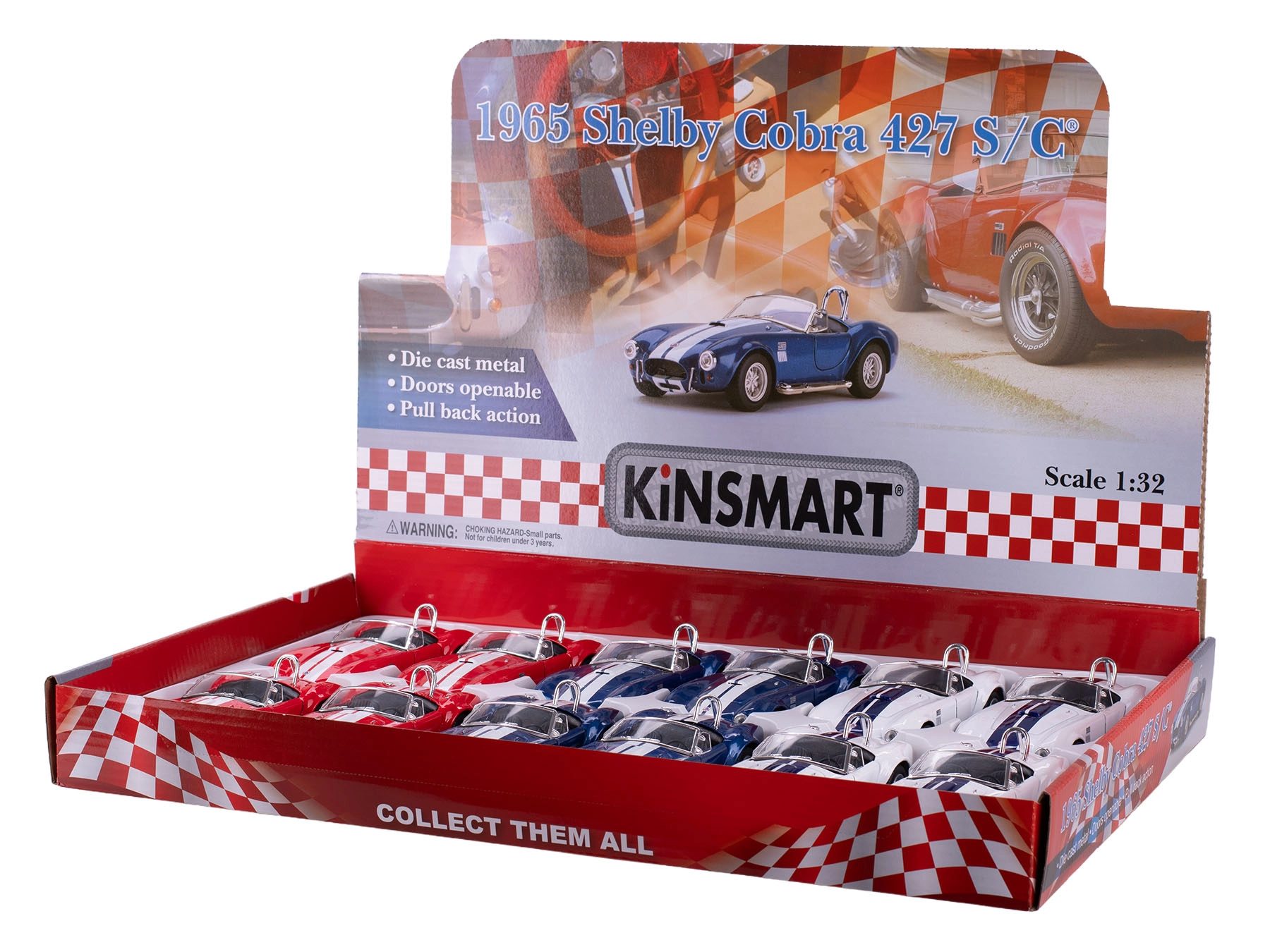 Entdecken Sie das ikonische Design der Rennlegende mit dem Modell Kinsmart Shelby Cobra 427 (1965) im Maßstab 1:32. Realistische Proportionen, präzise Karosseriedetails und ein sanfter Rückzuglauf sorgen für Spielspaß und ein attraktives Ausstellungsstück im Regal.