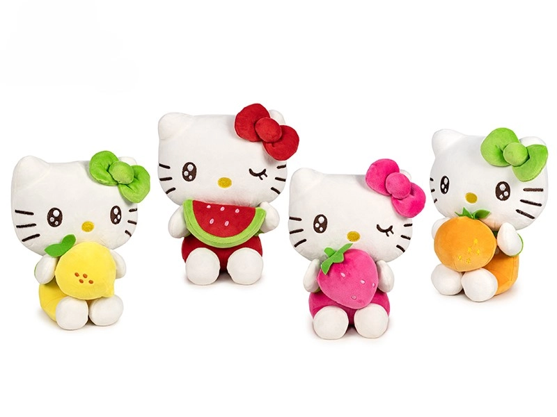 Die beliebte Figur Hello Kitty erscheint in einer liebevoll gestalteten Plüschversion, die für die Kleinsten sicher ist. Die sitzende Figur hält Obst in den Pfötchen und lädt dank des weichen, angenehmen Plüschs zum Kuscheln und Spielen ein. Perfekt für den Kinderwagen, das Bettchen oder als Dekoration im Kinderzimmer.