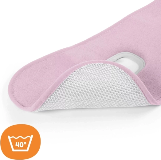 Die Einlage ist auf praktischen Gebrauch ausgelegt: Sie verfügt über eine Öffnung für die mittlere Schnalle und seitliche Formgebung für die Schultergurte, wodurch sie nicht verrutscht und das Anschnallen nicht beeinträchtigt. Die obere Schicht aus Bio-Baumwolle ist hautschonend, pestizidfrei und leicht zu pflegen – die Einlage ist bei 40 °C waschbar.