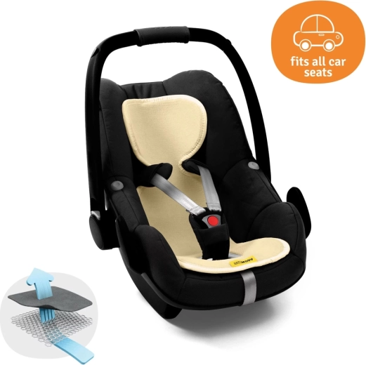 Atmungsaktive AeroMoov-Einlage für Autositze 0–13 kg sorgt das ganze Jahr über für Komfort für Ihr Baby. Dank der 3D-Wabenstruktur ermöglicht sie eine maximale Luftzirkulation, reduziert das Schwitzen und hält eine angenehme Körpertemperatur. Die Einlage ist weich und angenehm im Griff und außen aus Bio-Baumwolle, die bei 40 °C waschbar ist.