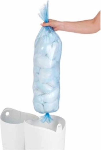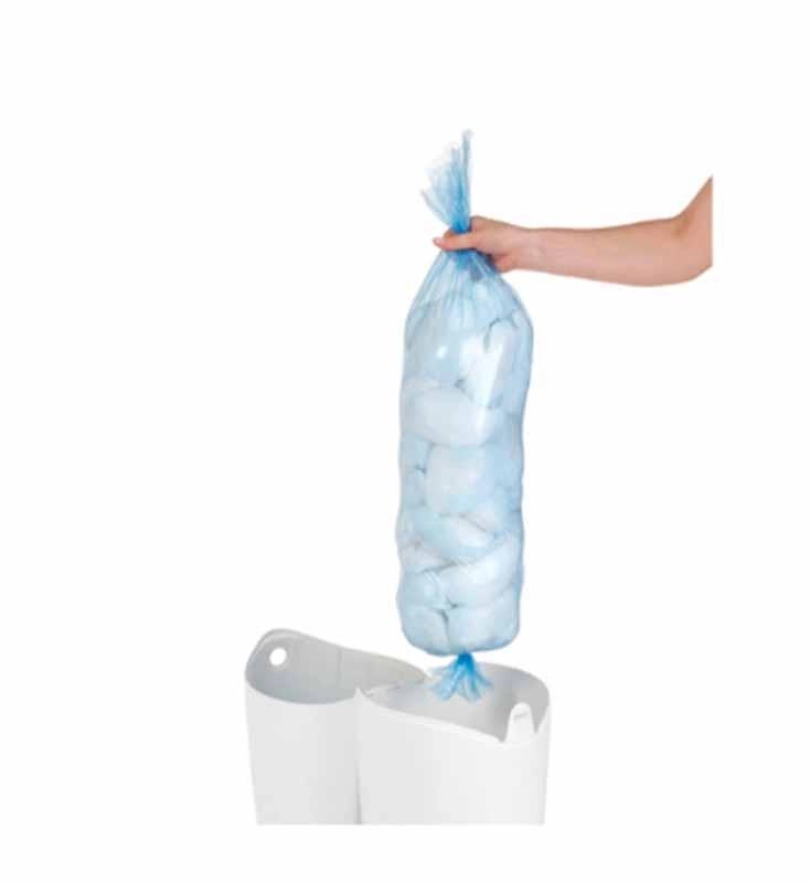 Eine Kassette für alle Angelcare-Eimer und alle Windelgrößen. Der Eimer fasst ca. 38 Windeln, eine gesamte Kassette ungefähr 180 – spart Zeit und Aufwand.