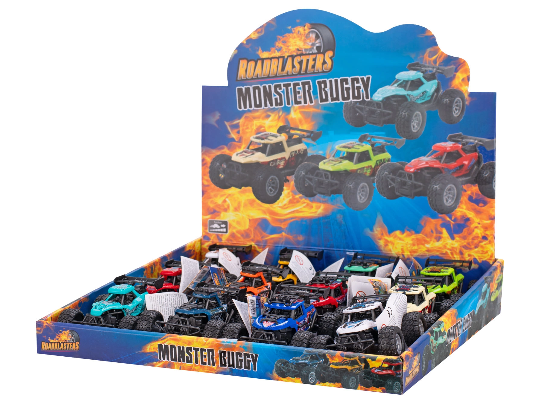 Der Roadblasters-Geländewagen ist die ideale Wahl für kleine Abenteurer, die Action und Erkundung lieben. Dank des Schwungantriebs reicht es, das Auto nach hinten zu ziehen und loszulassen – es fährt selbstständig nach vorne und bietet eine gleichmäßige, dynamische Fahrt. Die robuste Kunststoffkonstruktion und die kompakte Länge von 10,5 cm machen ihn zum perfekten Spielzeug für drinnen und draußen.