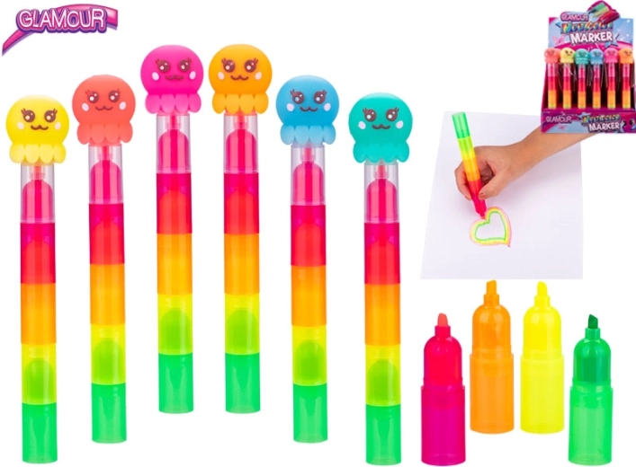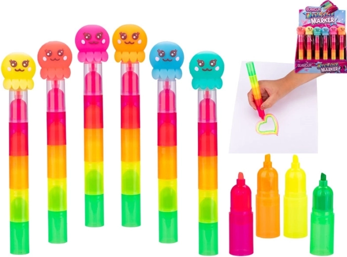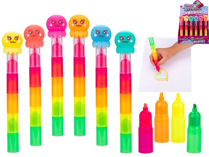 Entdecken Sie eine unterhaltsame und praktische Art des Markierens. Dieser fünffarbige Textmarker in Oktopusform kombiniert Orange, Rosa, Blau, Grün, Gelb und Rot in einem Gehäuse, sodass Sie schnell die Farben wechseln können, ohne das Werkzeug zu tauschen. Mit einer Länge von 18 cm und einem Durchmesser von 3 cm liegt er hervorragend in der Hand und ist ideal für den täglichen Gebrauch.