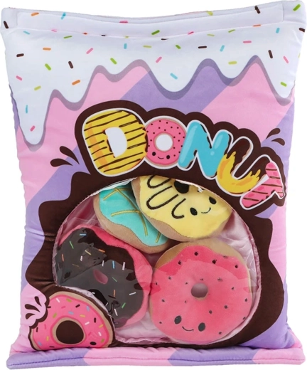 Die weiche Plüschtasche dient nicht nur als Verpackung, sondern auch als praktischer Organizer – Kinder lernen, Spielzeug wegzuräumen, zu sortieren und Ordnung zu halten. Die Texturen und Formen der Donuts fördern das taktile Empfinden, die Entwicklung der Feinmotorik sowie die Hand-Auge-Koordination schon im frühen Alter.