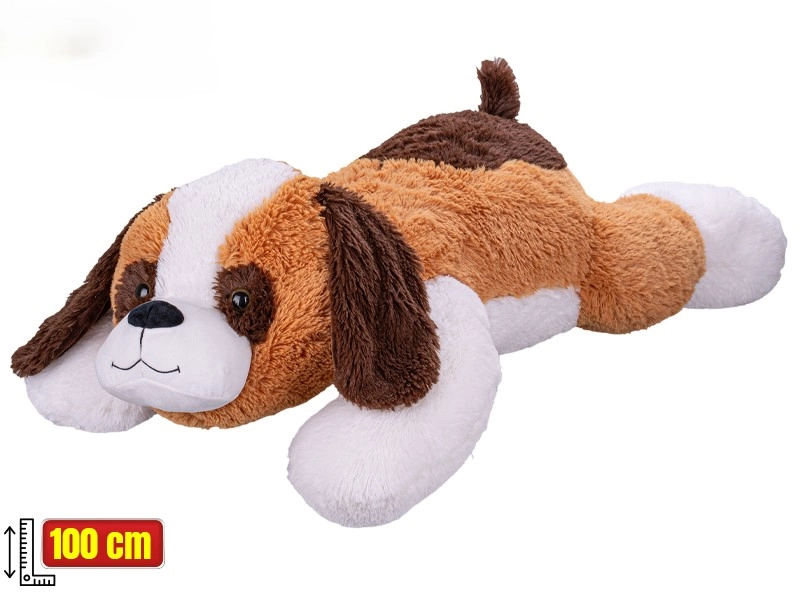 Suchen Sie einen weichen Freund zum Kuscheln und als Dekoration fürs Kinderzimmer? Dieser liegende Plüsch‑Bernhardiner misst beeindruckende 100 cm und besticht durch authentische Ausführung inklusive typischer Bernhardiner‑Färbung. Dank des flauschigen, weichen Materials ist er perfekt zum Ausruhen, Wohlfühlen und für das tägliche Spielen.