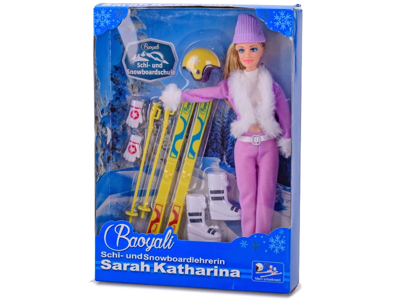 Im Lieferumfang ist alles für ein Skierlebnis enthalten: Skier, Stöcke, Skihelm, Mütze, Handschuhe und Skischuhe. Die Puppe ist in zwei Modefarben erhältlich – Rosa und Lila. Hinweis: Eine konkrete Farbvariante kann bei der Bestellung nicht ausgewählt werden.