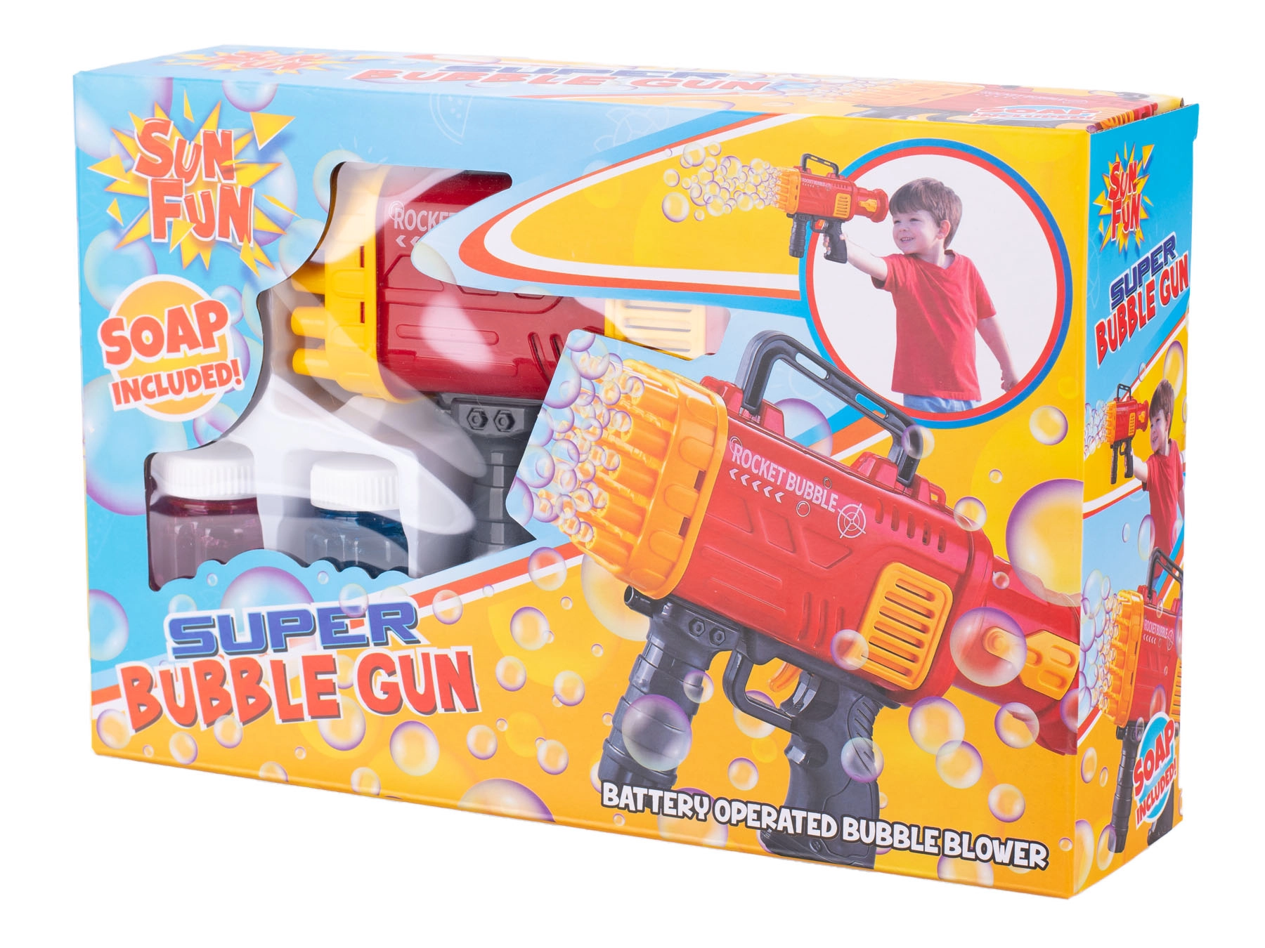 Die Sun Fun Seifenblasen-Pistole ist eine großartige Wahl für Kinder ab 3 Jahren. Dank der kompakten Größe liegt sie gut in der Hand und erzeugt mühelos viele Blasen. Im Lieferumfang sind gleich zwei Nachfüllungen enthalten, sodass Kinder stundenlangen Blasenspaß ohne häufiges Nachfüllen genießen können.
