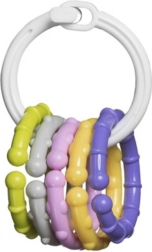 Der leichte Ring liegt gut in der Hand, und die Anhänger lassen sich leicht halten. Beim Spielen trainiert das Kind seinen Griff, die Geschicklichkeit und den Umgang mit Gegenständen.