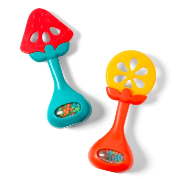 Eingebaute Kügelchen rasseln angenehm bei jeder Bewegung und fördern das Hörvermögen sowie die natürliche Neugier des Kindes.