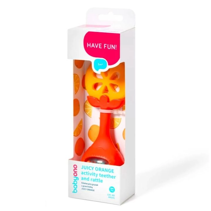 Der Lern-Beißring mit Rassel in Orangenform ist für eine bequeme und sichere Nutzung durch die Kleinsten konzipiert. Strukturierte Zonen helfen, Juckreiz und Druck beim Durchbruch der ersten Zähnchen zu lindern, während rasselnde Kügelchen für Spaß und auditive Stimulation sorgen. Die leichte Konstruktion und der leicht zu greifende Griff fördern die Hand-Auge-Koordination sowie das Umgreifen von einer Hand zur anderen.