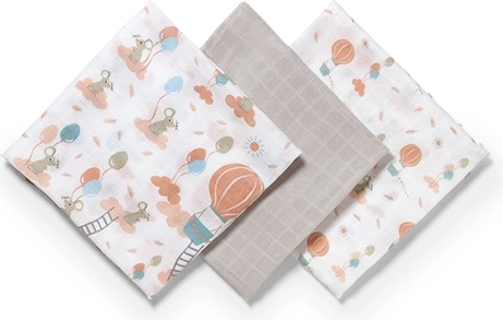 Das praktische 3er-Set kombiniert zwei Tücher mit zarten Pastellmotiven von Tieren und Ballons und ein einfarbiges in Grau – harmoniert mühelos mit der Babyausstattung. Die Tücher sind leicht, trocknen schnell und sind pflegeleicht. Für anhaltende Weichheit auf schonendes Waschen gemäß Herstellerempfehlung achten.