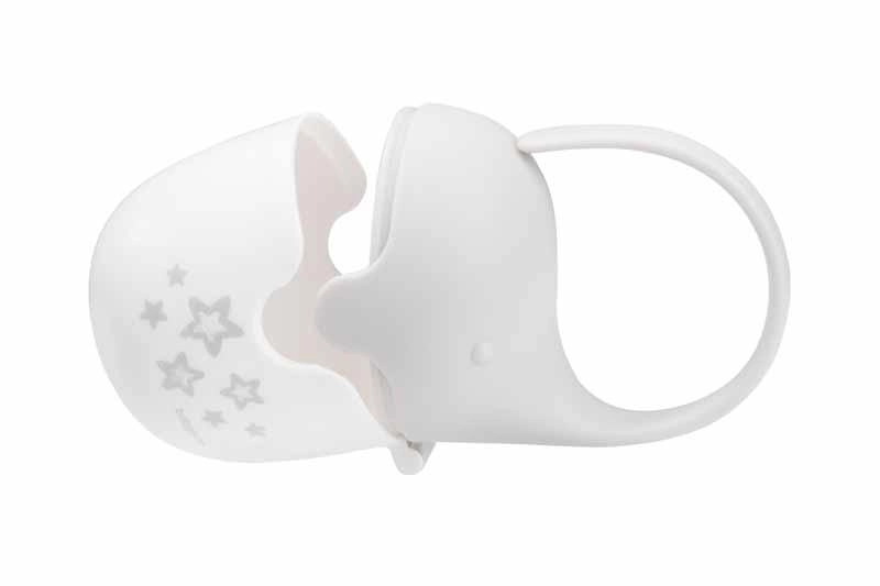 Die verschließbare Box schützt den Schnuller unterwegs, auf Reisen und zu Hause vor Staub und Schmutz.