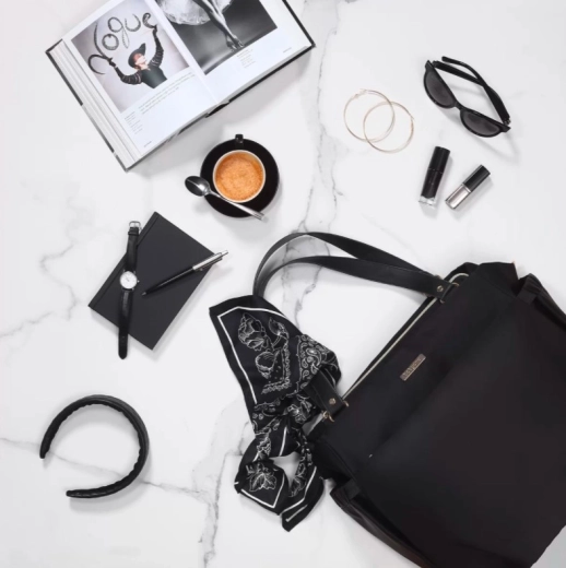 Bequeme Griffe, ein abnehmbarer Schulterriemen und seitliche Riemen zur einfachen Befestigung am Kinderwagen sorgen für maximale Flexibilität und freie Hände.