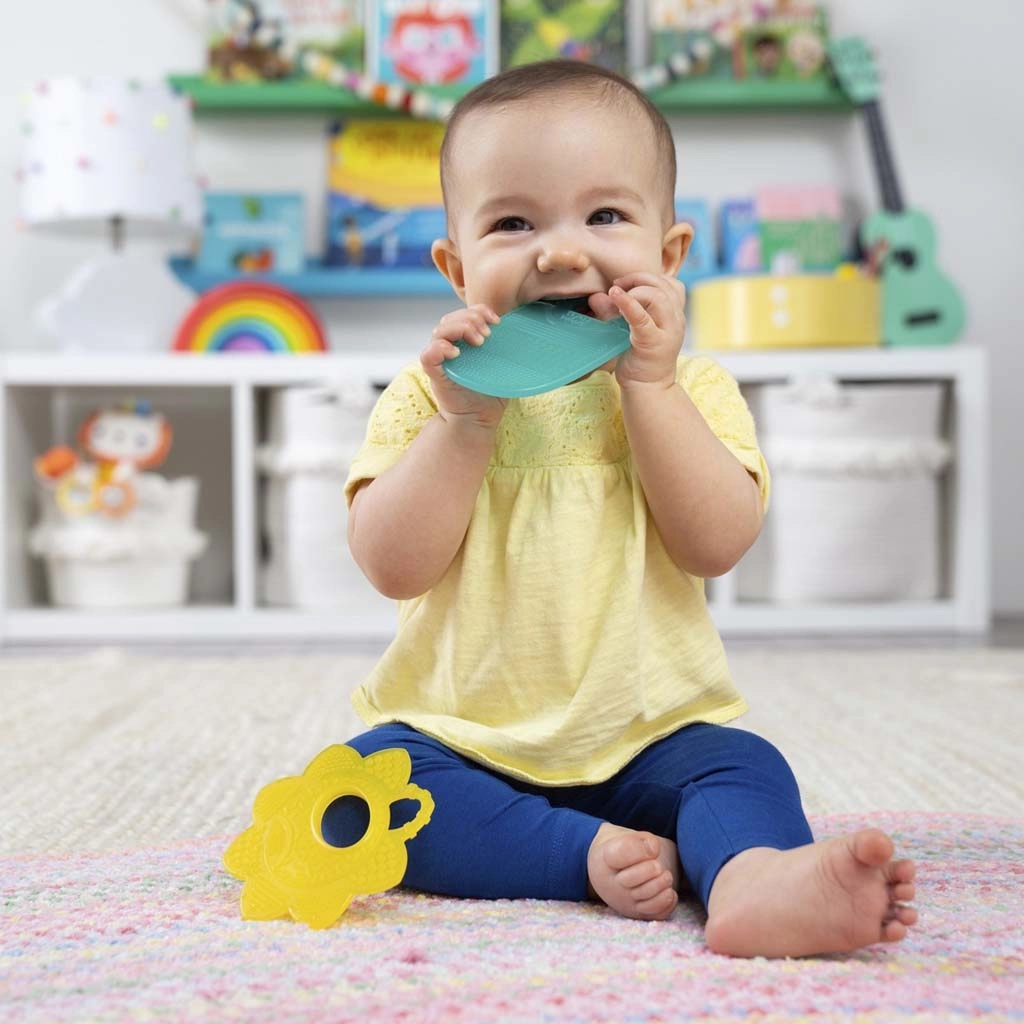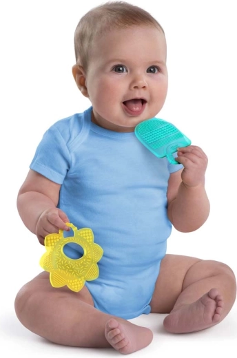 Die Bright Starts Sunny Soothers Beißringe in Blumen- und „Paddel“-Form sind für das bequeme Halten mit kleinen Händen und gezielte Linderung beim Zahnen konzipiert. Unterschiedliche Texturen und Borsten massieren sanft das Zahnfleisch und helfen, Ihr Baby in dieser anspruchsvollen Phase zu beruhigen.
