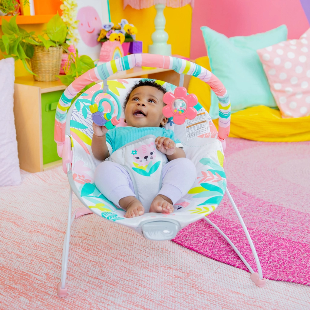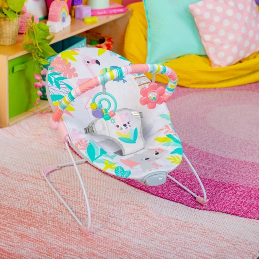 Die Wippe Rainforest Vibes macht jeden Tag zu einem kleinen Dschungelerlebnis. Der weiche, ergonomisch geformte Sitz schenkt Ihrem Baby Geborgenheit, während beruhigende Vibrationen beim schnellen Zur-Ruhe-Kommen und Wohlfühlen helfen. Dank der stabilen Metallkonstruktion mit rutschfesten Füßen und dem sicheren Dreipunktgurt ist eine verlässliche Nutzung gewährleistet.