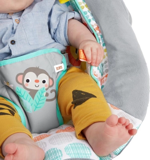 Zur Förderung der sensorischen Entwicklung dienen bunte Taggies-Bändchen und zwei niedliche Hänge-Spielzeuge am leicht abnehmbaren Spielbügel. Die stabile Konstruktion mit rutschfesten Füßen und 3-Punkt-Sicherheitsgurt hält Ihr Kind sicher. Der Bezug der Wippe lässt sich leicht abnehmen und in der Waschmaschine reinigen – für sorglose Pflege.