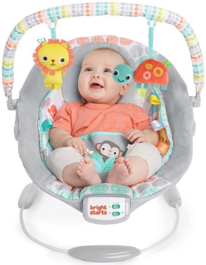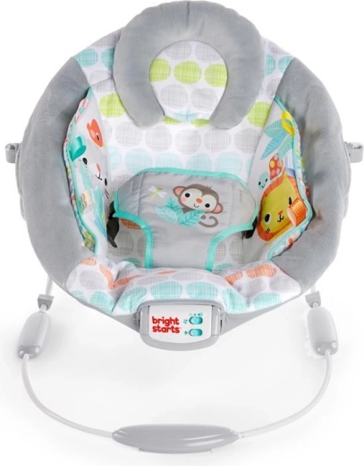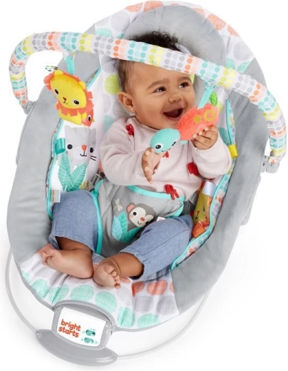 Die Bright Starts Whimsical Wild Wippe ist für täglichen Komfort und Spielspaß konzipiert. Weiche Polsterung, eine abnehmbare Kopfstütze und die integrierte Neugeboreneneinlage bieten Ihrem Baby die richtige Unterstützung. Beruhigende Vibrationen und 7 Melodien mit einstellbarer Lautstärke helfen beim Beruhigen und Einschlafen, während der 15‑Minuten-Timer Batterien schont.