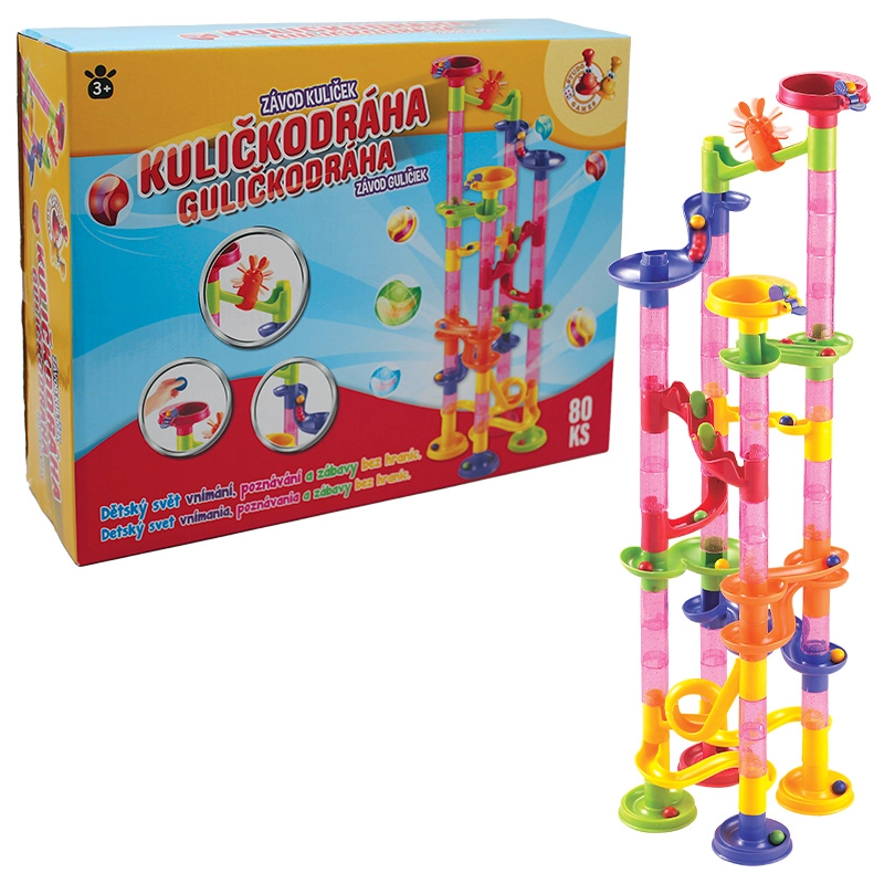 Die STUDO GAMES Murmelbahn mit 80 Teilen ist ein unterhaltsames und lehrreiches Konstruktionsspiel, mit dem Kinder eigene kurvenreiche Bahnen entwerfen und die Fahrt der Murmeln verfolgen. Beim Bauen probieren sie verschiedene Formen und Höhen aus und entwickeln dabei ganz natürlich ihre Kreativität, Augen-Hand-Koordination und Geduld.