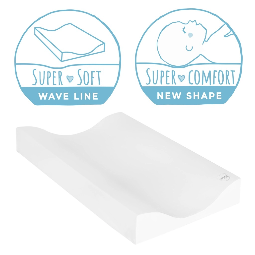 Diese Wickelauflage verbindet eine weiche Polsterung für maximalen Babykomfort mit sicherem, zertifiziertem PVC, das strapazierfähig, hygienisch und sanft zur empfindlichen Babyhaut ist. Zwei erhöhte Ränder helfen, das Kind in der Mitte der Auflage zu halten und tragen zu einem sichereren Wickeln bei.