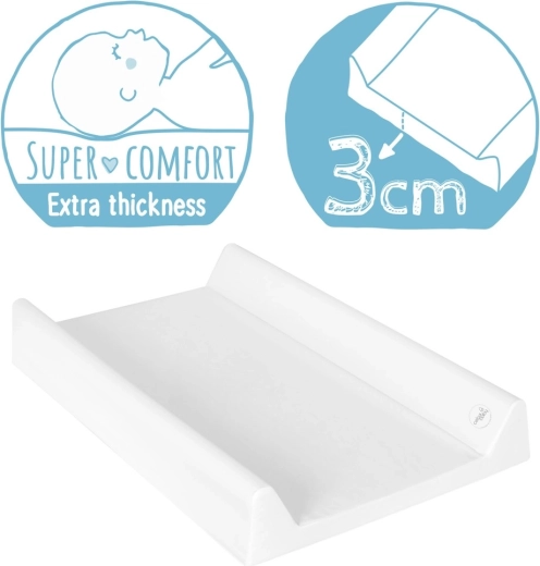 Die Wickelauflage Ceba Baby Comfort ist für die tägliche Pflege von Neugeborenen und Säuglingen konzipiert. Zwei seitliche Kanten erhöhen das Sicherheitsgefühl, die feste Platte sorgt für Stabilität auf dem Kinderbett und die weiche Füllung mit bis zu 3 cm Dicke bietet dem Baby echten Komfort. Die Oberflächenfolie ist zertifiziert, enthält keine Phthalate und ist sanft zur Kinderhaut.