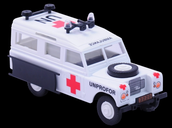 Der Monti System Bausatz bietet ein authentisches Modell des UNPROFOR-Krankenwagens auf Land-Rover-Basis im Maßstab 1:35. Die Teile passen präzise, daher erfolgt der Aufbau ohne Klebstoff und ohne Lackieren. So entsteht ein sauberer und stabiler Bausatz, geeignet zum Spielen und Sammeln.