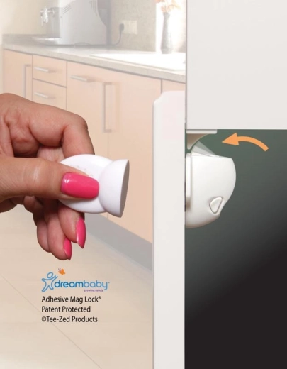 Die magnetischen Schlösser von Dreambaby schützen Schubladen und Schranktüren vor neugierigen Kinderhänden. Dank der verdeckten Montage bleibt das Möbelbild sauber und ungestört, während Erwachsene die Türen mit dem starken Magnetschlüssel mühelos öffnen. Die Installation ist schnell und bohrfrei – einfach aufkleben und fixieren.