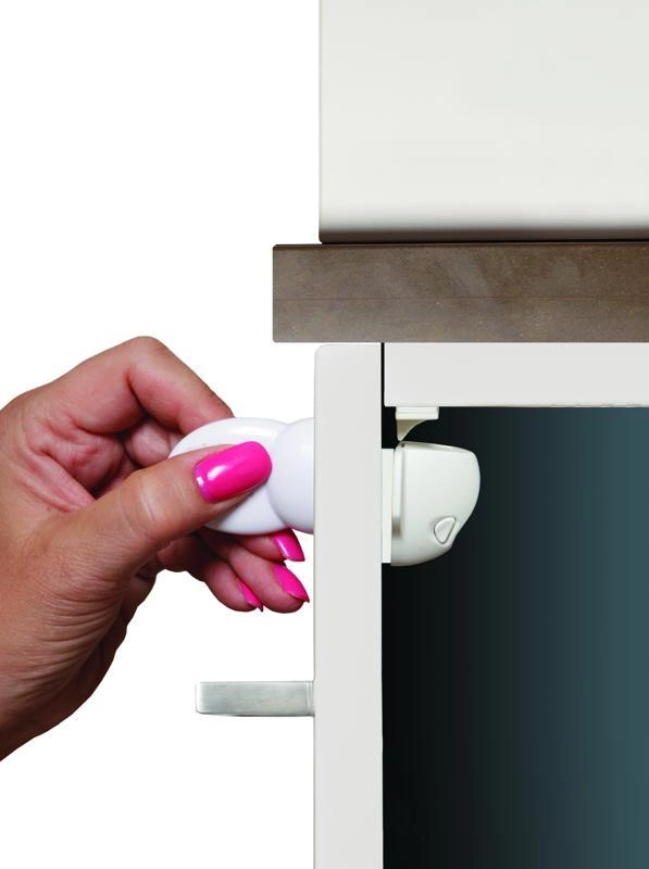 Die Schlösser werden im Inneren des Schranks montiert, sind von außen nicht sichtbar und stören das Möbeldesign nicht. Dennoch halten sie die Türen zuverlässig kindersicher verschlossen.