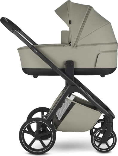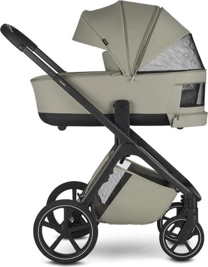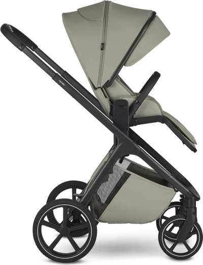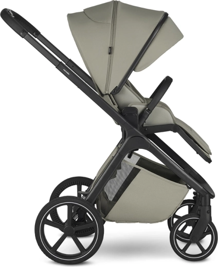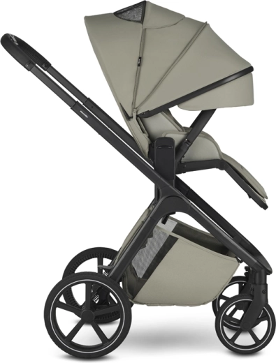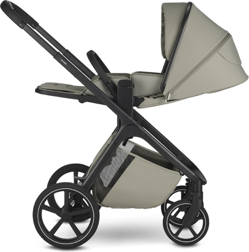 Der Sportsitz bietet drei Neigungspositionen und lässt sich mit einem Handgriff in und gegen die Fahrtrichtung drehen. Die Wanne überzeugt mit einer hochwertigen Matratze, einer Anti-Reflux-Lösung und Belüftung sowohl im Verdeck als auch im unteren Bereich für ein angenehmes Klima. Ein geräumiger Einkaufskorb (bis 7 kg) und ein verstellbarer Schiebegriff sorgen für komfortables Führen.