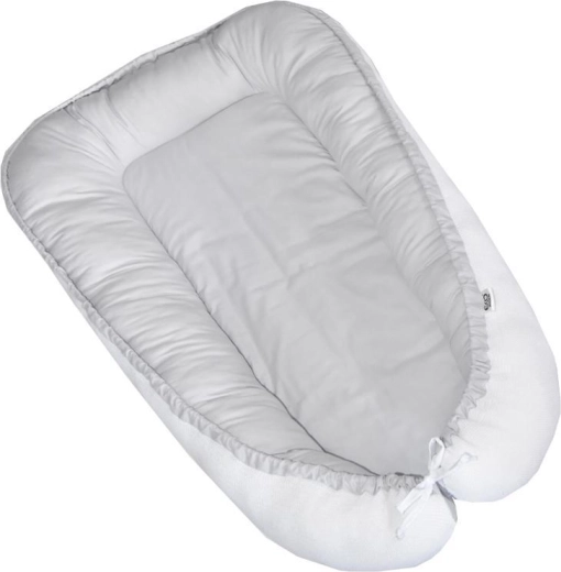 Das beidseitige Babynest Eko White-Grey ist eine großartige Alternative zu Decken und Pucktüchern. Es bietet dem Baby dank des verkleinerten Raums und der weichen Füllung Komfort, Sicherheit und Nähe. Hohe Ränder helfen, das Kind in einer sicheren Position zu halten, und erleichtern das Lagern auf der Seite – besonders vorteilhaft bei Reflux-Beschwerden.