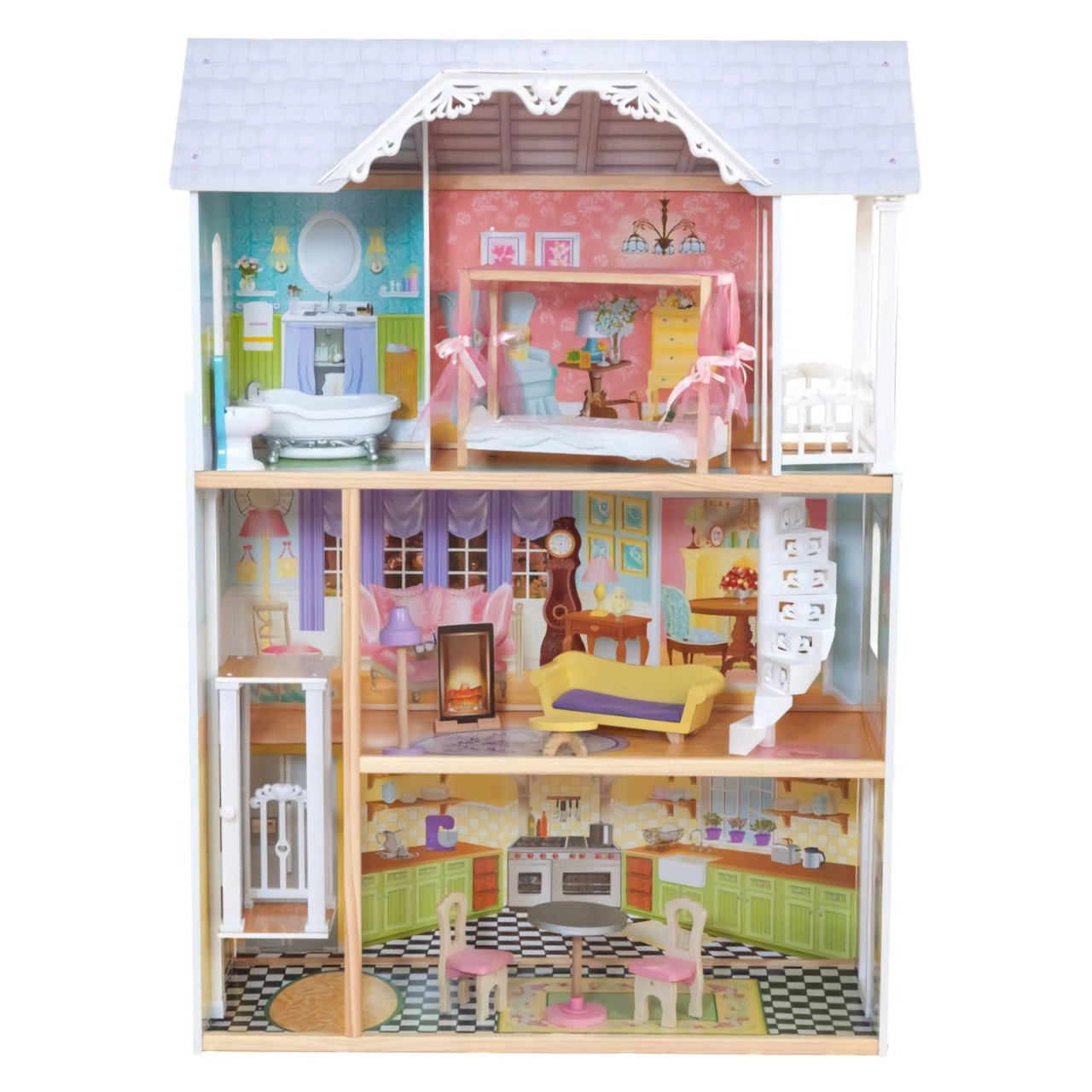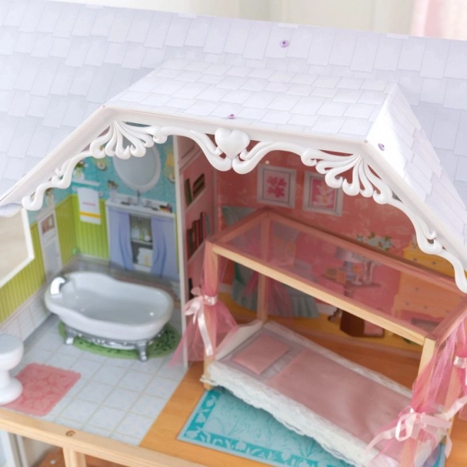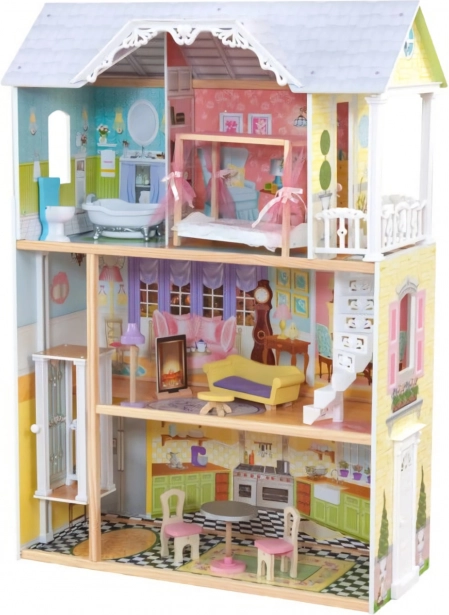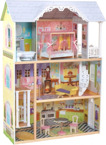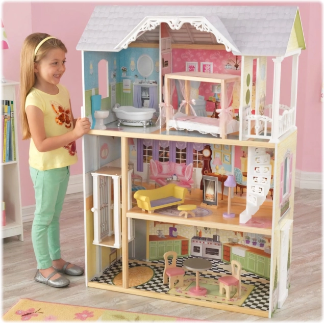 Das Puppenhaus Kaylee bietet Kindern realitätsnahes Spiel in wunderschön illustrierten Räumen – Schlafzimmer, Wohnzimmer, Küche und Bad. Dank der offenen Bauweise ist der Zugang von allen Seiten möglich, sodass auch Geschwister gleichzeitig bequem spielen können. Der Aufzug gleitet sanft zwischen den Etagen, und die zu öffnende Tür fügt dem Spiel einen weiteren magischen Akzent hinzu.