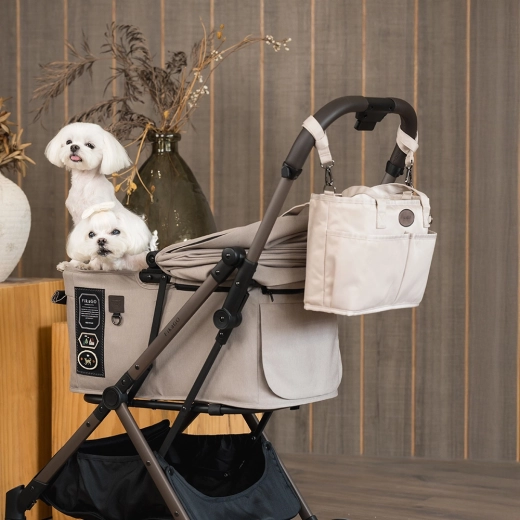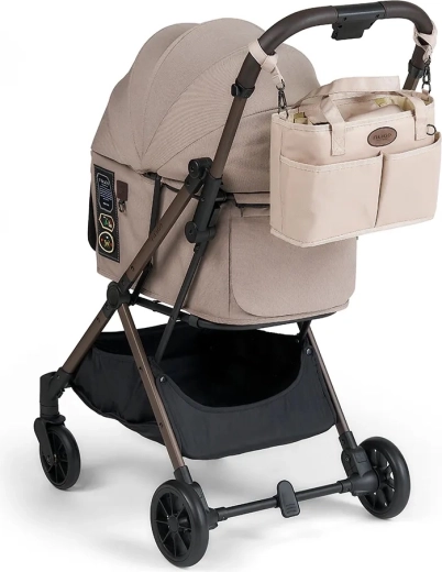 Der Organizer ist so gestaltet, dass er auf die meisten Kinderwagen passt, und seine feste Form hält den Inhalt auch während der Fahrt übersichtlich. Das beige Design lässt sich leicht mit verschiedenen Kinderwagenstilen kombinieren und ist dank hochwertiger Materialien einfach zu pflegen.
