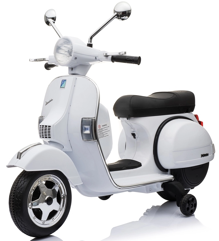 Der elektrische Kinderroller Vespa PX150 in Weiß ist vom ikonischen italienischen Design inspiriert und für Kinder angepasst, um sicheres und unterhaltsames Fahren zu ermöglichen. Die Pedalsteuerung ist intuitiv, sodass sich auch jüngere Fahrer schnell zurechtfinden und Sicherheit „am Lenker“ gewinnen.