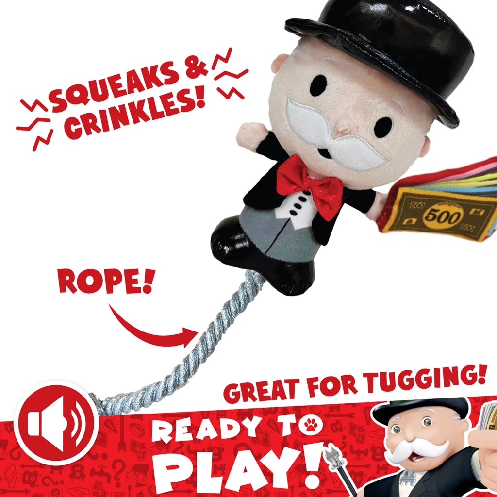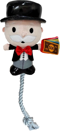 Dieses offiziell lizenzierte Plüschspielzeug mit der ikonischen Figur aus MONOPOLY vereint weiches Gefühl und langlebige Verarbeitung. Ideal zum Ziehen, Apportieren und für selbstständiges Spiel. Dank der Kombination aus Plüsch und geflochtenem Seil eignet es sich für leichte bis mittlere Beanspruchung und ist zugleich angenehm zum Kauen.