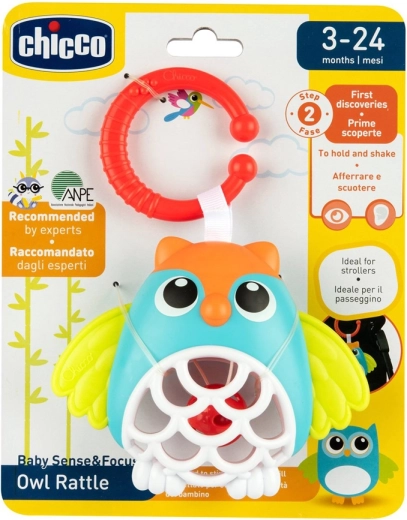 Die Chicco Eule mit C-Ring ist ein farbenfrohes Rasselspielzeug, das Babys mit Klang, Formen und kontrastreichen Farben begeistert. Weiche Teile sind sanft zum Zahnfleisch, und Griff sowie Körper des Spielzeugs liegen gut in der Hand. Dank des universellen Rings lässt es sich schnell am Kinderwagen, Autositz oder Bettchen befestigen.
