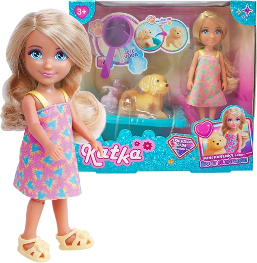 Das Set Puppe Katka mit Hund und Badewanne erfreut jede kleine Fürsorgerin. Die Puppe hat langes, zum Kämmen geeignetes Haar und ein farbenfrohes Outfit, der Hundefreund lädt zum Erfinden von Geschichten ein und die Badewanne in fröhlichen Farben ergänzt die Baderituale der Puppe. Dank hochwertiger Materialien ist das Spiel sicher und widerstandsfähig für den täglichen Gebrauch.