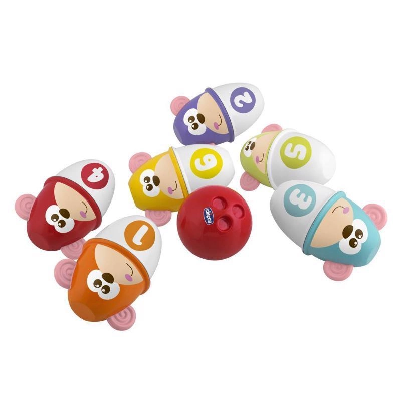 Das Set Chicco Lustige Äffchen bietet Kindern ab 18 Monaten erste Kegelerlebnisse. Die Kegel in kräftigen Farben laden zum Spielen ein, fördern die Wurfgenauigkeit und unterstützen die natürliche Entwicklung des Gleichgewichts. Jeder Kegel lässt sich leicht in zwei Teile trennen, sodass Kinder eigene Bahnen, Tunnel und Hindernisstrecken gestalten können.