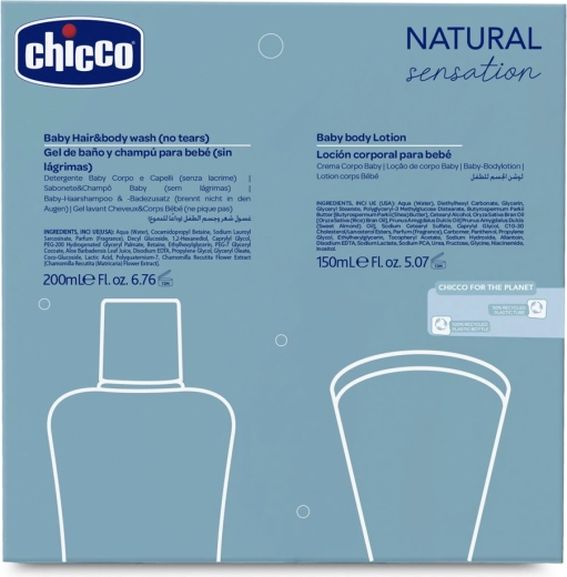 Das Chicco Natural Sensation Daily Care Geschenkset ist die perfekte Lösung für die tägliche Hygiene und Hydratation Ihres Babys. Das 2-in-1 Shampoo- und Duschgel mit Aloe Vera und Kamille reinigt Haut und Haare in einem Schritt, lässt sich leicht abspülen und erleichtert das Kämmen. Die Körperlotion mit Sheabutter und Vitamin E spendet langanhaltende Feuchtigkeit, stärkt die Hautbarriere und zieht schnell ein, ohne einen fettigen Film zu hinterlassen.