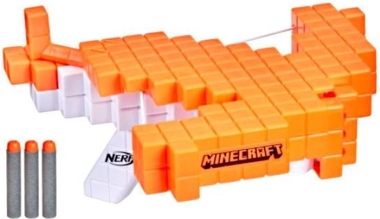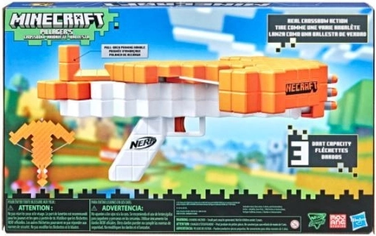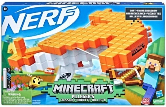 - NERF MINECRAFT PILLAGER ARMBRUST: Diese Armbrust ist vom Spiel Minecraft inspiriert und schießt mit Pfeilen aus Schaumstoff.