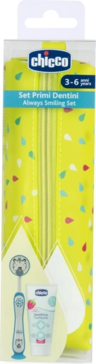 Das CHICCO Reiseset zur Zahnhygiene ist ideal für Kindergarten, Ausflüge und Besuche bei den Großeltern. Es enthält alles Nötige für eine sanfte Pflege der Kinderzähne: eine Zahnbürste für Milchzähne, Zahnpasta mit beliebtem Erdbeergeschmack und einen farbigen Becher – alles in einem praktischen Etui mit Tiger-Motiv.