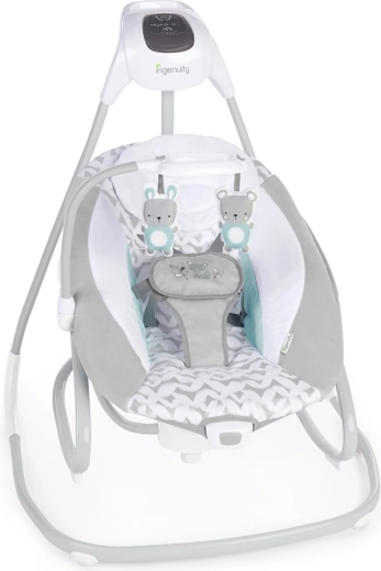 Ingenuity Raylan bringt Ruhe und Komfort im kompakten Format. Dank zwei Betriebsarten – als Schaukel oder als eigenständige Wippe – passt sie sich leicht dem Tagesablauf an. Die leise WhisperQuiet-Technologie, bis zu 6 Schaukelstufen und die 180°-Drehung des Sitzes für Schaukeln in 3 Richtungen helfen, Ihr Baby schneller zu beruhigen und zu beschäftigen. Ein Schaukel-Timer (30/45/60 Min.) sowie das automatische Abschalten von Melodien und Vibrationen sparen Energie und Aufmerksamkeit.