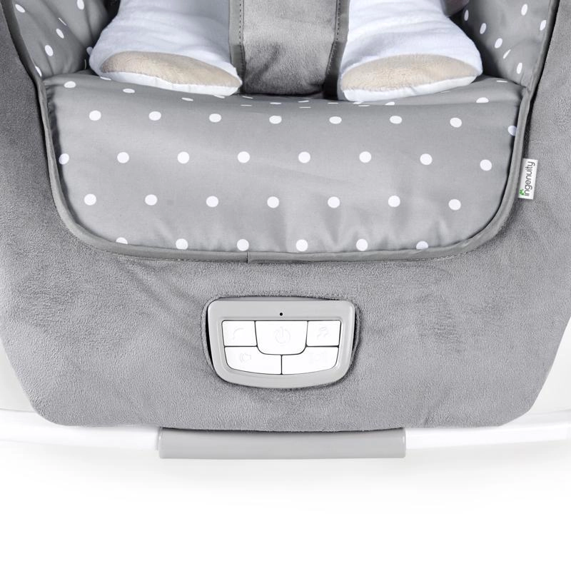 Die vibrierende Wippe Ingenuity Cuddle Lamb ist für den täglichen Komfort und die Sicherheit der Kleinsten konzipiert. Sie bietet drei Neigungswinkel für optimale Unterstützung, beruhigende Vibrationen und optionale Melodien mit Naturgeräuschen. Kuschelweiche Stoffe mit stilvollem Design verwöhnen die empfindliche Babyhaut, die Neugeboreneneinlage mit Kopfstütze bietet zusätzliche Unterstützung und kann leicht entfernt werden, sobald das Kind wächst.