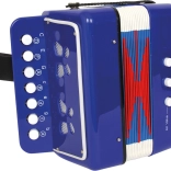 Dieses blaue Kinderakkordeon ist ein hervorragender Einstieg für kleine Anfänger. Dank der leichten Bauweise und des praktischen Tragegurts liegt es gut in der Hand, bunte Bälge und deutlich markierte Knöpfe erleichtern die ersten Spielversuche. Kinder entwickeln Gehör, Rhythmus und Feinmotorik, während sie spielerisch und kreativ musizieren.