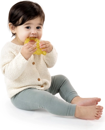 Der Ingenuity Beißring Bomby wurde für sofortige Linderung bei wundem Zahnfleisch entwickelt. Einfach im Kühlschrank kühlen und dem Baby eine angenehm kühle Oberfläche mit verschiedenen Texturen anbieten, die das Zahnfleisch sanft massieren und Reizungen lindern. Das niedliche Hummel-Motiv und der sanfte goldgelbe Farbton fallen sofort ins Auge.