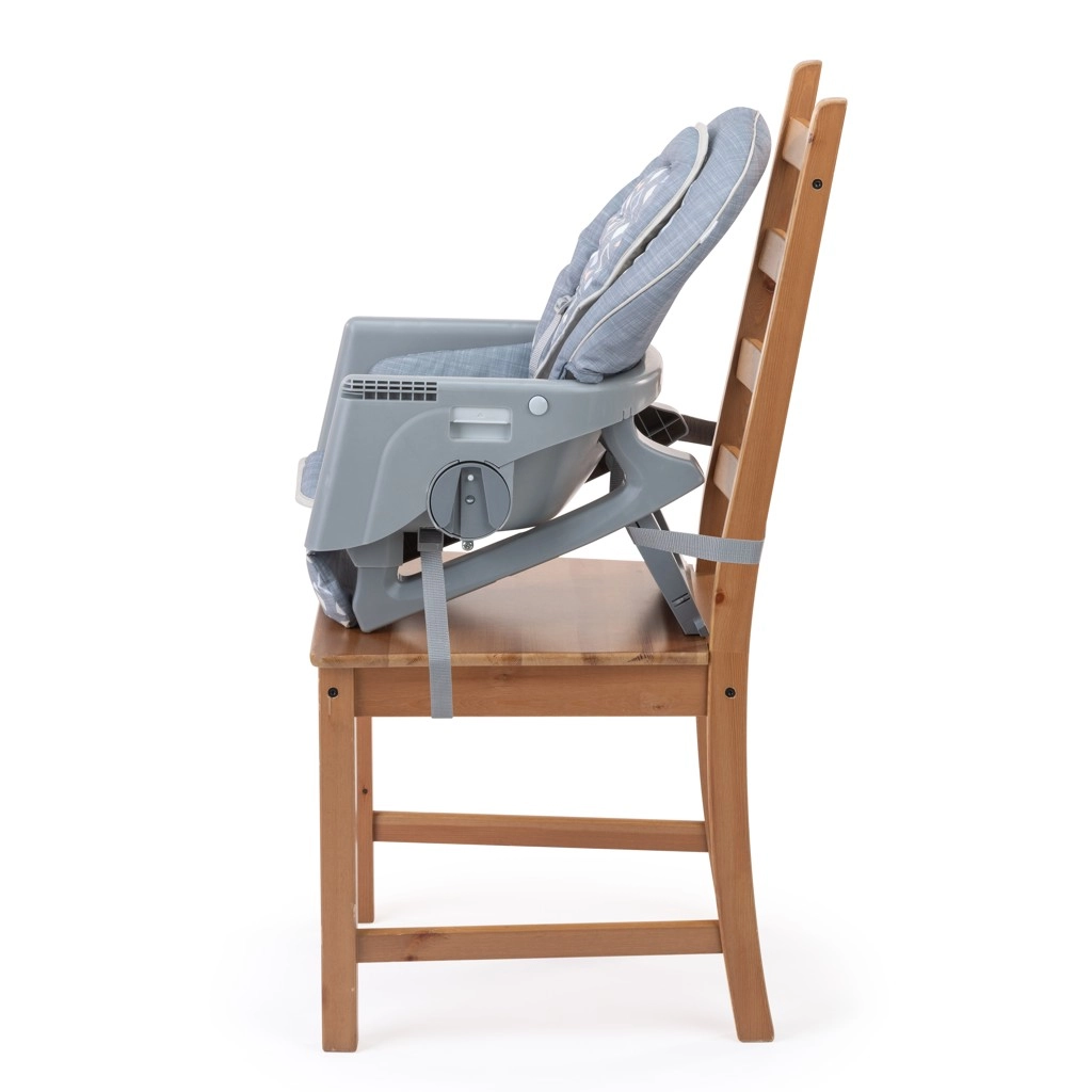 Ein Stuhl für alle Phasen: Liegesitz, Wippsitz, Hochstuhl mit Tablett und Sitzerhöher für den normalen Stuhl. Passt sich Alter und Bedürfnissen des Kindes an.