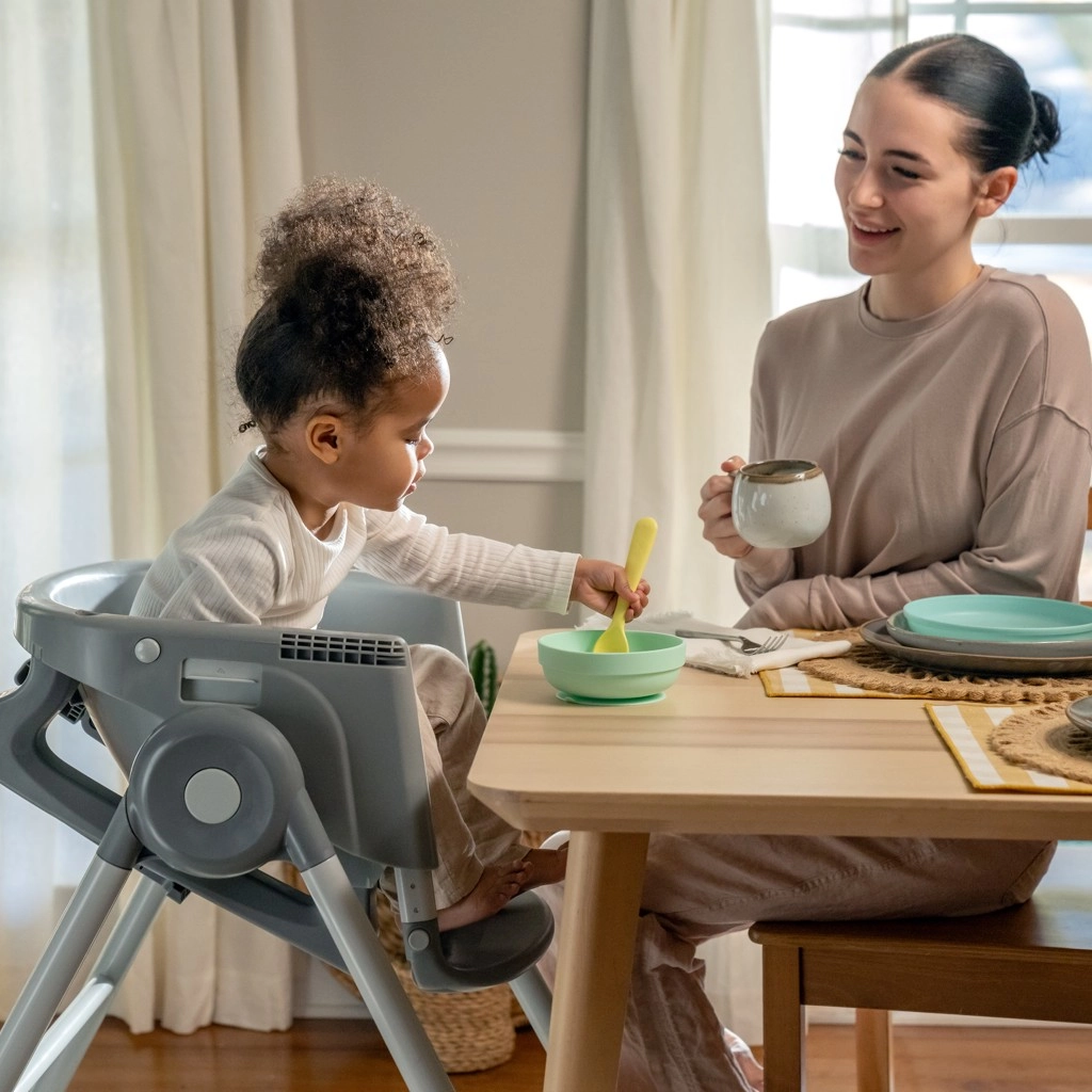 Die praktische Ausstattung spart Zeit und Nerven: Das Tablett mit 3 Positionen verfügt über einen Becherhalter und eine herausnehmbare Spülmaschineneinlage, Bezüge und Einlagen lassen sich einfach in der Maschine waschen. Für Sicherheit sorgen je nach Modus ein 5-Punkt- oder 3-Punkt-Gurt. Die stabile Konstruktion mit breiter Basis und leicht zu reinigende Materialien sind ideal für den Familienalltag.