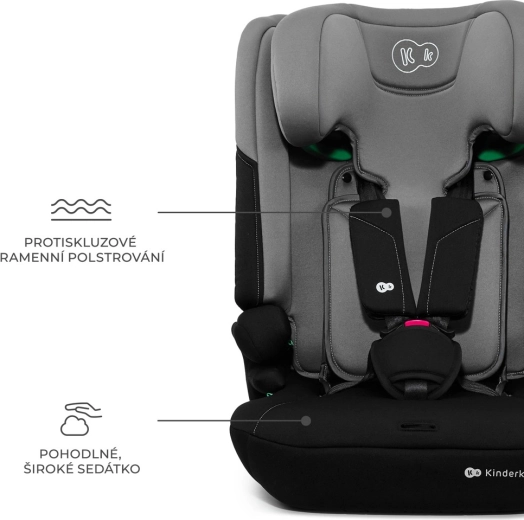 Die Sicherheit wird durch die dreischichtige H-GUARD-Schaum-Kopfstütze und den verstärkten SPS-Seitenschutz unterstützt. Ein einzigartiger Führer für den Beckengurt hält den Gurt tief auf dem Becken für eine stabile und sichere Anschnallführung. Der Sitz wird einfach mit dem 3-Punkt-Fahrzeuggurt installiert und ist damit mit den meisten Autos kompatibel. Für Komfort auf längeren Fahrten sorgen eine 10-stufige Neigungsverstellung der Rückenlehne, eine breite Sitzfläche sowie 5-Punkt-Gurte mit weichen Polstern und einer rutschhemmenden Schicht auf den Schultergurten.