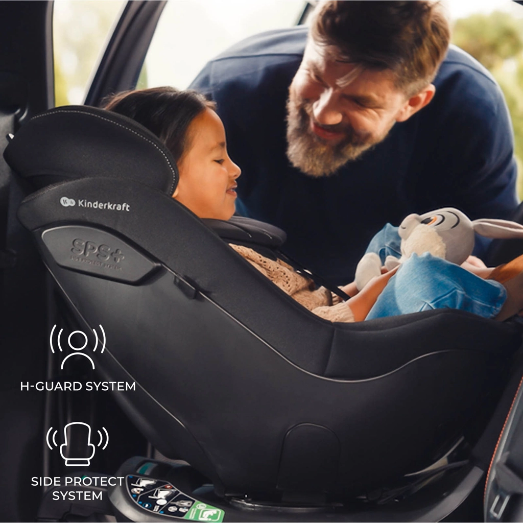 Der Kindersitz KINDERKRAFT I-Guard Pro i-Size vereint erstklassigen Schutz mit intuitiver Bedienung. Dank der 360° drehbaren Basis wechseln Sie mühelos zwischen entgegengesetzter Fahrtrichtung (RWF) und in Fahrtrichtung (FWF) und schnallen Ihr Kind an, ohne Ihren Rücken unnötig zu belasten. ISOFIX, Stützfuß und 4 Indikatoren für die korrekte Installation sorgen für Sicherheit bei jeder Fahrt.